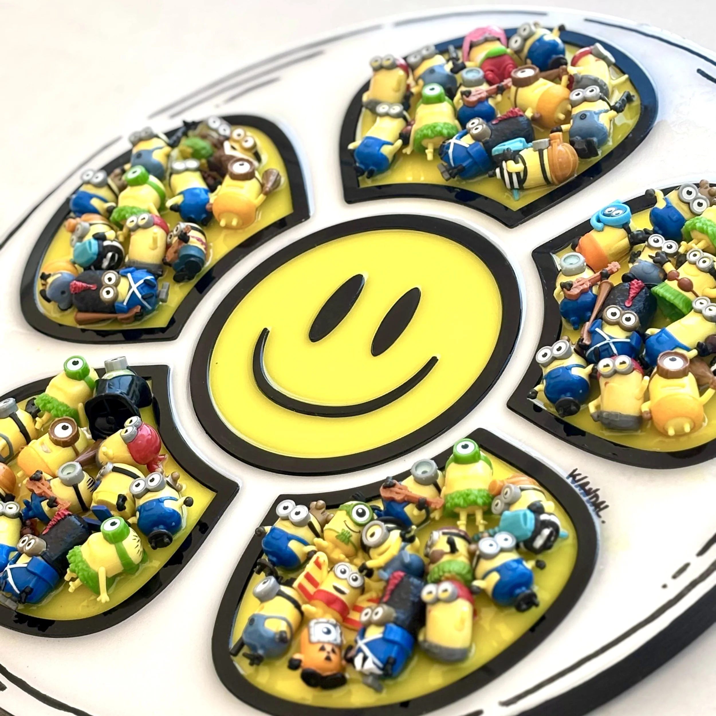 Son truc ? L’upcycling émotionnel : paillettes, smileys, couleurs qui claquent, références 80-90 et souvenirs d’enfance se rencontrent dans un tourbillon de dopamine pure.
