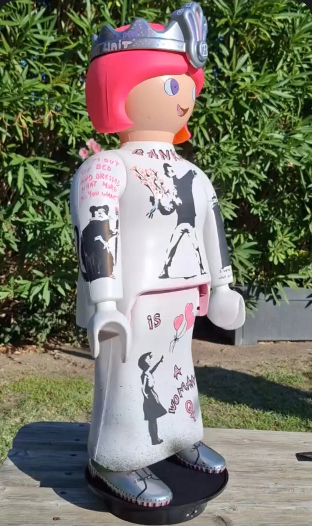 Originaire d’Amiens mais installée près de Marseille, elle a gardé de son enfance un trésor inépuisable : les Playmobils. Sauf qu’au lieu de rester dans un carton, ils sont devenus les héros XXL de son univers artistique.